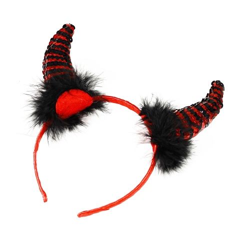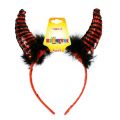 Úžasné čertí rohy na saténové čelence jsou zdobeny oslnivými flitry a hebkým peřím. Tyto senzační růžky se stanou ozdobou každé půvabné čertice!