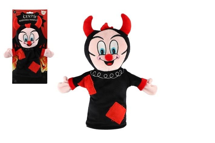 Čertík/čert maňásek na ruku plyšový 30cm na kartě 0m+