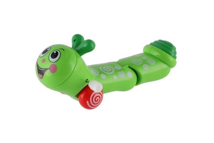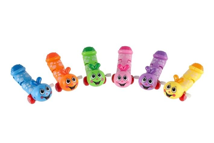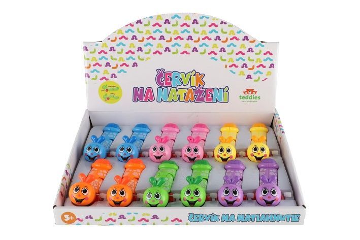 Rozkošní barevní červíčci, kteří se po natažení plazí vpřed. Červík se natahuje pomocí šroubku umístěného na boku hračky.