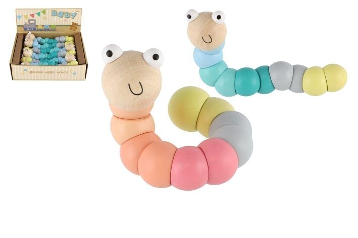 Červík/housenka kloubový dřevo 16cm asst 2 barvy 14ks v boxu 10m+