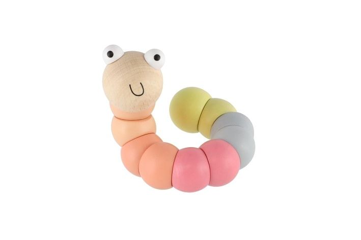 Udělejte radost Vašim dětem tímto krásným dřeveným červíkem, který hraje všemi barvami. Červíka lze různě ohýbat. Rozměry výrobku 16 x 3 x 3 cm. Vhodné od 10 měsíců.
