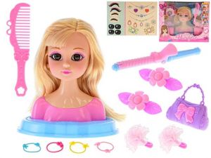 Česací hlava naučí vaše malé kadeřnice a kadeřníky, jak na jednoduché i složitější účesy. Potom mohou česat i vás. Česací hlava má velikost 19 cm. Balení obsahuje i doplňky. Vhodné pro děti od 3 let.