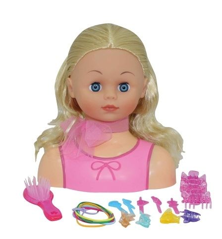 Česací hlava panenky Bambolina Amore. Součástí balení je 20 různých