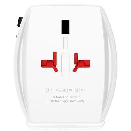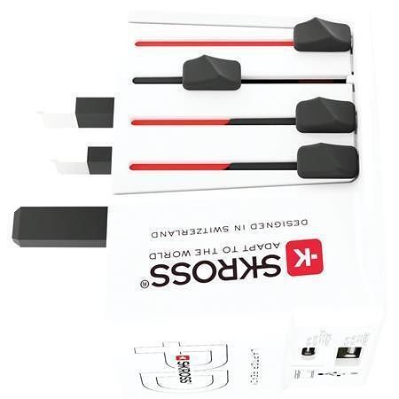 S adaptérem SKROSS MUV USB AC65PD World - mohou cestovatelé z celého světa současně nabíjet jedno zařízení přes USB-C, jedno přes klasické USB a zároveň připojit jedno neuzemněné 2-pólové zařízení.