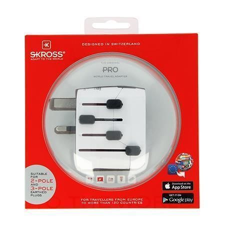 Cestovní adaptér SKROSS PRO (7A) zajišťuje jednoduché a bezpečné připojení ve více než 200 zemích světa.