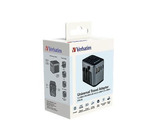 Cestovní adaptér "UTA-03", univerzální, USB-A (QC 3.0) / USB-C (PD30W) 2x USB, VERBATIM 49