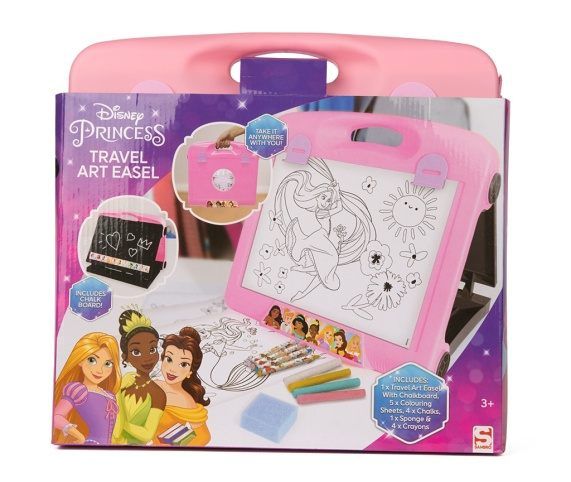 Praktická cestovní položka na malování oboustranná – lze jednoduše složit do kufříku s ouškem. Podložku lze jednoduše rozložit, má dva klipy na připevnění papíru nebo tabuli na křídy. Balení obsahuje 5 ks omalovánek, 4 ks křídy, 1 ks houbička, 4 ks voskovky.