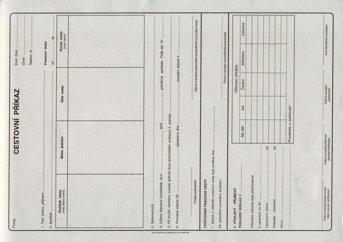 Cestovní příkaz A4 s vyúčtováním, 50l /ET235/