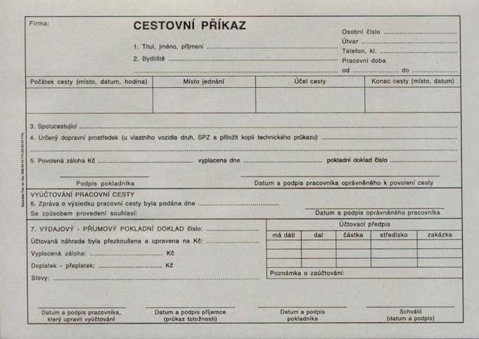 Cestovní příkaz A5 s vyúčtováním, 50l /ET230/