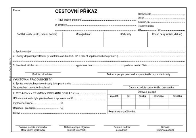 Cestovní příkaz s vyúčtováním A5 (oboustranný) / ET230 / Baloušek tisk