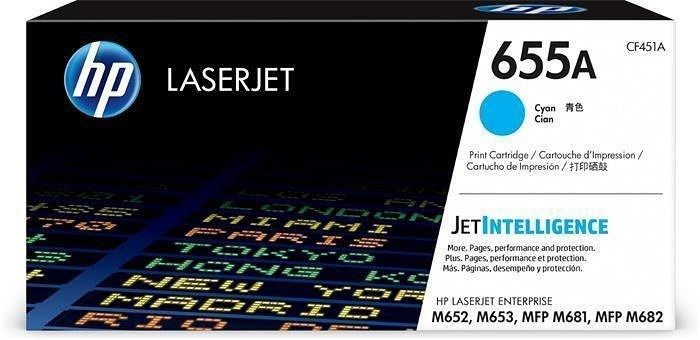CF451A Toner pro Color LaserJet M681, M682 tiskárny, HP 655A, cyan, 10,5 tis. stran