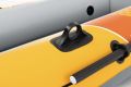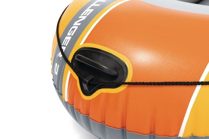 Nafukovací člun Challenger™ 2 je určený pro příjemné trávení času na vodě, a to zejména pro maximálně dvě osoby. Člun je vyroben z robustního PVC materiálu v kombinaci oranžové, žluté a šedé barvy, který je navržen tak, aby odolal poškození a zajišťoval dlouhou životnost i při častém používání. Jeho konstrukce zahrnuje tři vzduchové komory, včetně pomocné komory uvnitř hlavního trupu, což významně zvyšuje bezpečnost při plavbě. Podlaha člunu je nafukovací s I-nosníkovou konstrukcí, což přispívá k pevnosti a stabilitě plavidla, a zároveň zvyšuje pohodlí pro posádku. Člun je vybaven dvěma bostonskými ventily, které umožňují rychlé a efektivní nafouknutí či vyfouknutí, což usnadňuje manipulaci a přepravu. Pro lepší ovládání a bezpečnost je po obvodu člunu upevněno lano, které slouží i jako opora, a na přídi se nachází pevné svařované madlo. Na bocích člunu jsou umístěny držáky na vesla spolu se zámky, které zajistí pevné uchycení přiložených hliníkových vesel. Součástí balení je také ruční pumpa, která usnadní nafukování bez nutnosti elektrického zařízení. Díky svému designu a funkčním prvkům je Challenger™ 2 vhodný nejen pro klidnou relaxaci na jezeře, ale také pro aktivní veslování a vodní dobrodružství během letních měsíců.