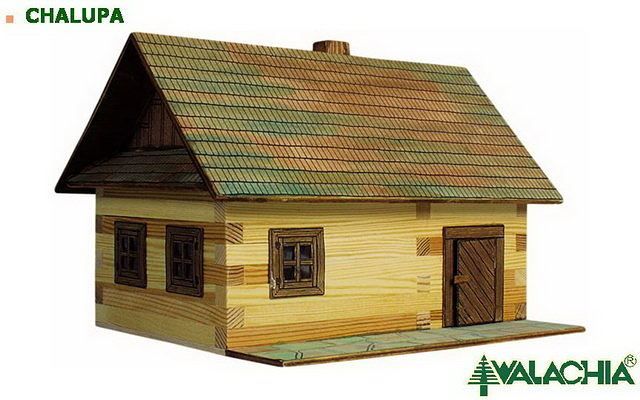 Dřevěná slepovací stavebnice Walachia - Roubená chalupa. Slepovací stavebnice Walachia jsou dřevěné modely domečků a staveb z Valašského kraje v měřítku 1:32. Základem jsou dřevěné hranolky 9x9 mm a k tomu jsou v sadě vždy všechny papírové doplňky - okna, dveře, střešní části atd. Pro lepení se používá lepidlo Herkules, není však součástí stavebnice. Přiložený je montážní návod a malé kapitoly z historie lidové architektury.Níže je označení obtížnosti číslem 1 - 5, přičemž 1 je nejlehčí. Rozměry: 22 x 15 x 15 cm Počet dílů: 100 Obtížnost: 2