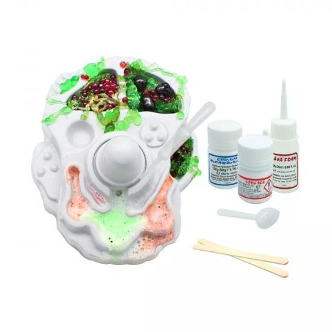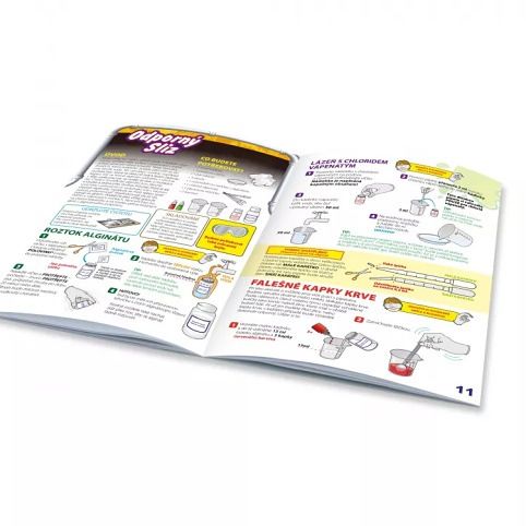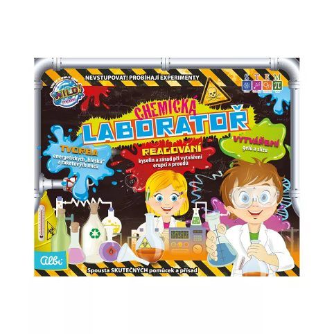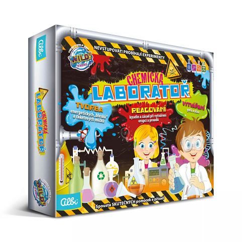 Chemická laboratoř je určena pro děti od osmi let. Sada obsahuje množství zábavných experimentů, které děti nadchnou a při nichž se také dovědí zajímavé informace. Mohou si vyrobit raketové kuličky, vtipný sliz či sopku s lávovou pěnou.