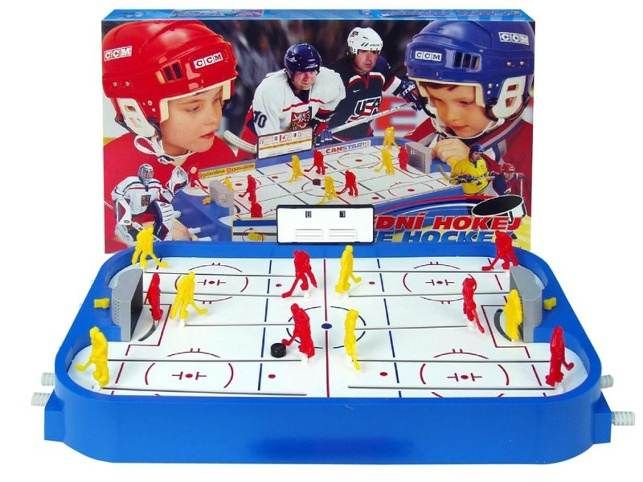 Obsahuje hokej se dvěma kompletními týmy, náhradní hráče, náhradní díly a ukazatele skóre.