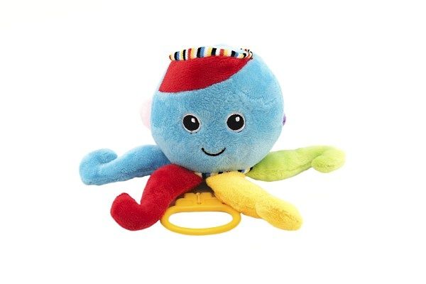Natahovací hudební hračka ve tvaru měkké závěsné chobotnice pro nejmenší. Lze připnout k postýlce. Po natažení přehrává ukolébavku. Veselé barevné provedení. Možnost zavěsit kamkoliv.Strojek je mechanický, na natahování šnůrkou.