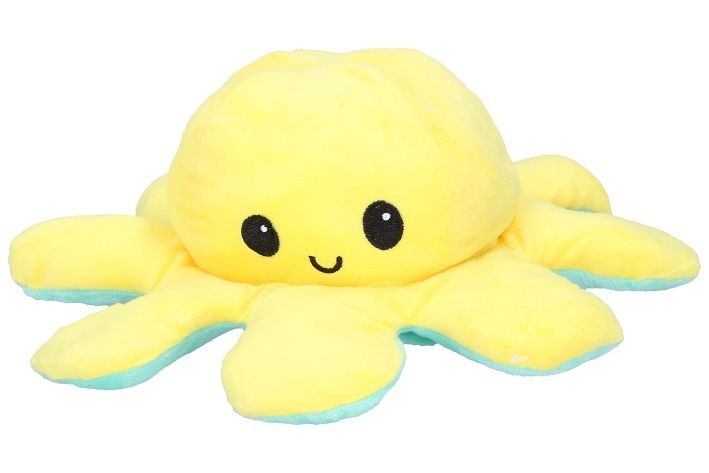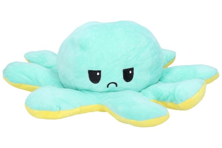 Roztomilá plyšová chobotnice, která na Vaší tváři zaručeně vykouzlí úsměv. Jedna strana se stále usmívá pro dobrou náladu ale pokud ji převrátíte naruby uvidíte naštvanou a zamračenou chobotničku. Každá strana je rozdílně barevná a k dispozici máme spousty barevných variací. Dejte partnerovi najevo jak se zrovna cítíte a dejte chobotničku na viditelné místo! Úžasný dárek.
