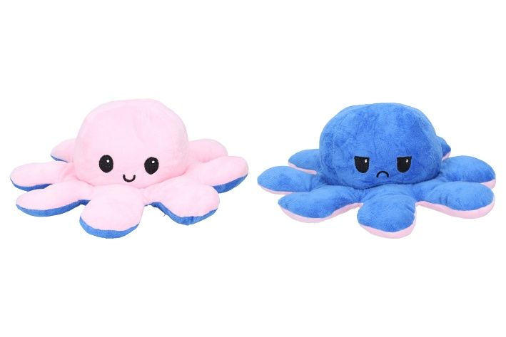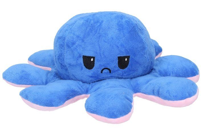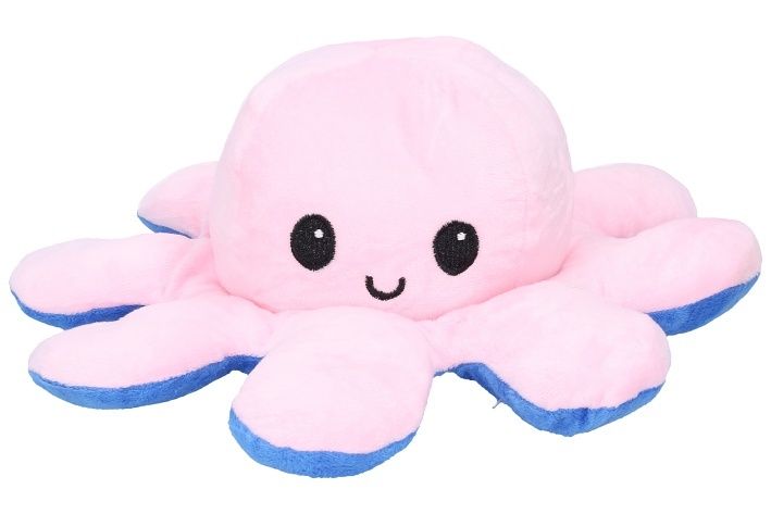 Roztomilá plyšová chobotnice, která na Vaší tváři zaručeně vykouzlí úsměv. Jedna strana se stále usmívá pro dobrou náladu ale pokud ji převrátíte naruby uvidíte naštvanou a zamračenou chobotničku. Každá strana je rozdílně barevná a k dispozici máme spousty barevných variací. Dejte partnerovi najevo jak se zrovna cítíte a dejte chobotničku na viditelné místo! Úžasný dárek.