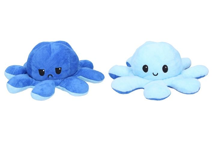 Roztomilá plyšová chobotnice, která na Vaší tváři zaručeně vykouzlí úsměv. Jedna strana se stále usmívá pro dobrou náladu ale pokud ji převrátíte naruby uvidíte naštvanou a zamračenou chobotničku. Každá strana je rozdílně barevná a k dispozici máme spousty barevných variací. Dejte partnerovi najevo jak se zrovna cítíte a dejte chobotničku na viditelné místo! Úžasný dárek.