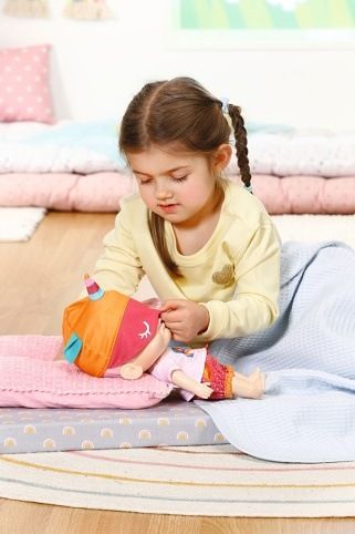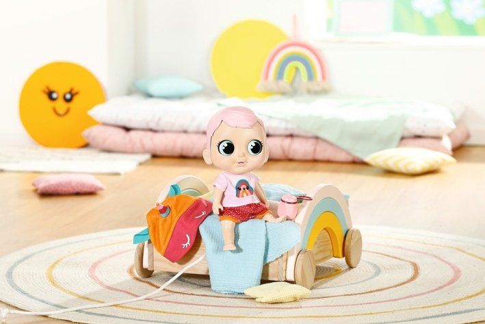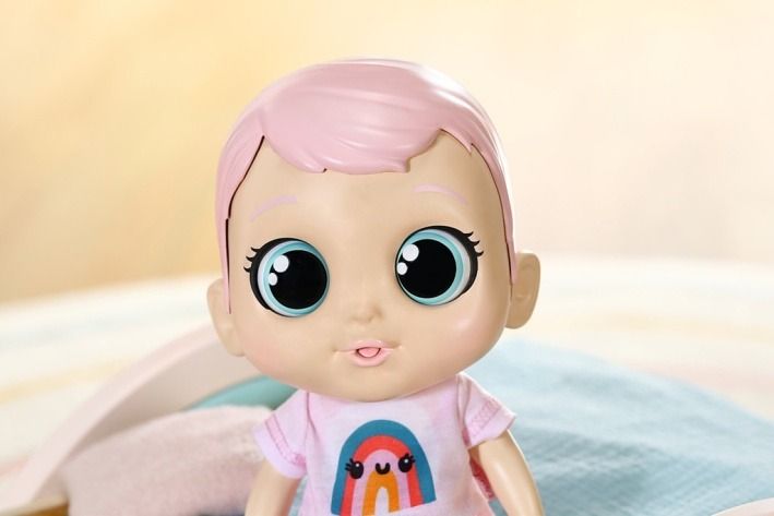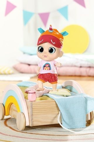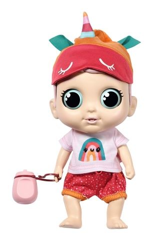 CHOU CHOU prostě neposedí. Nadšeně hýbe očima a netrpělivě čeká na další kolo hry Takhle jedou páni. A už s maminkou zase vesele poskakuje. Kdo by taky odolal těm velikým roztomilým očím? Po zábavné hře 30 cm velká panenka slyšitelně saje ze své lahvičky nebo cumlá dudlík. Po radostném hraní má nejen žízeň, ale je i unavená. Když ji malá maminka kolébá ke spánku, svou pohodu dává CHOU CHOU najevo zíváním a zvuky spinkání. Legrační jednorožčí čepička slouží jako maska na spaní. Panenka s růžovými vlásky má na sobě tričko s potiskem duhy a růžové kalhoty s roztomilými tečkami. Součástí limitované edice je také pyžamko v leopardím stylu. • Originální panenka CHOU CHOU. • Ve stylu kreslených panenek. • Velikost 30 cm. • S velkýma pohyblivýma očima. • S roztomilými funkcemi a zábavnými zvuky. • Funguje na baterie (nejsou součástí balení). CHOU CHOU Baby Robin, limitovaná edice, je panenka velikosti 30 cm. Na sobě má tričko, kalhoty a čepičku. Součástí je lahvička a dudlík. V limitované edici je také pyžamko. Na baterie: 3x AAA (nejsou součástí balení)