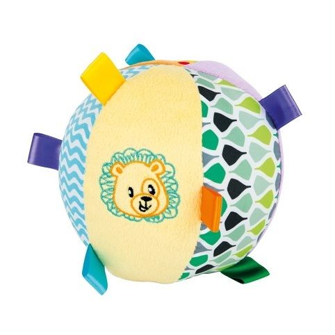 Zábavná hračka pro nejmenší – chrastící měkký míček s motivem lva. Při pohybu unitř chrastí, při zmáčknutí šustí. Skvělá hračka pro rozvoj jemné motoriky.