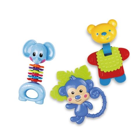 Rádi byste pořídili vašemu miminku hračku, kterou si zamiluje? Sada těchto veselých chrastítek je určena právě pro něj! Každé dítě má rádo pestré hračky, které vydávají zvuky a snadno se uchopí. S těmito roztomilými chrastítky zažije děťátko mnoho legrace a navíc si přitom rozvíjí motorické a zrakové schopnosti.