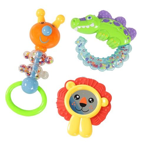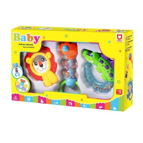 Rádi byste pořídili vašemu miminku hračku, kterou si zamiluje? Sada těchto veselých chrastítek je určena právě pro něj! Každé dítě má rádo pestré hračky, které vydávají zvuky a snadno se uchopí. S těmito roztomilými chrastítky zažije děťátko mnoho legrace a navíc si přitom rozvíjí motorické a zrakové schopnosti.