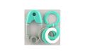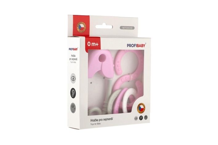 Sada chrastítek obsahuje klasický špendlík a osmičku s kroužky. Chrastítko jsou vyrobeny barvách, které dokonale stimulují zrak dítěte, které ještě nerozlišuje barvy. Hračka má lehkou konstrukci a správnou velikost pro ruku malého dítěte. Některé lehké zvuky stimulují sluchové smysly.