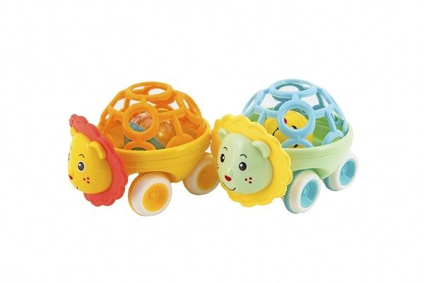 Chrastítko autíčko zvířátko plast 14cm 2 barvy na volný chod