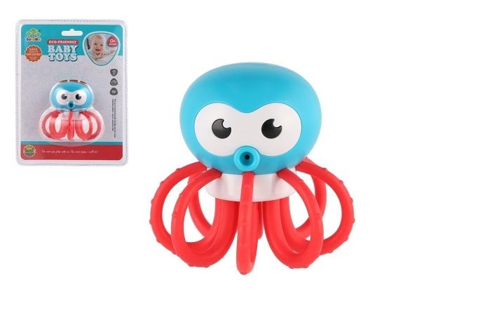 Chrastítko ve tvaru chobotnice potěší každé miminko svým roztomilým vzhledem i jemným chrastivým zvukem. Lehký a dobře uchopitelný tvar padne do malých dětských ručiček a podporuje rozvoj jemné motoriky i sluchového vnímání. Vyrobeno z nezávadného plastu.