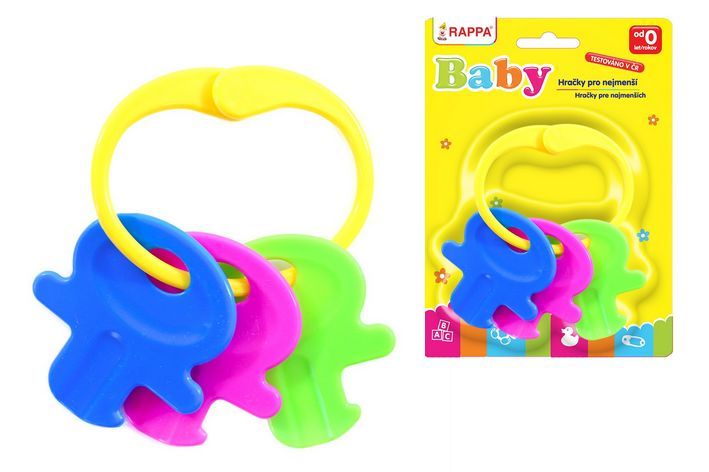 Veselé chrastítko se třemi plastovými přívěšky klíči, je určeno pro ty nejmenší. Tento praktický kousek navíc rozvíjí motorické a zrakové dovednosti děťátka.