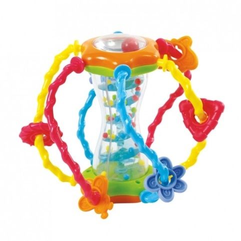 Pestrobarevná edukační koule zaujme děti na první pohled. Koule obsahuje různé tvary, se kterými se děti procvičí jemnou motoriku a uvnitř se po "šneku" koulí malé kuličky.