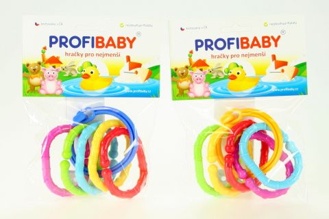 Plastové chrastítko s přívěsky. Kroužek obsahuje 5 přívěsků v různých barvách, Výrobek neobsahuje ftaláty. Rozměr kroužku cca 7 cm. Věk 0+.