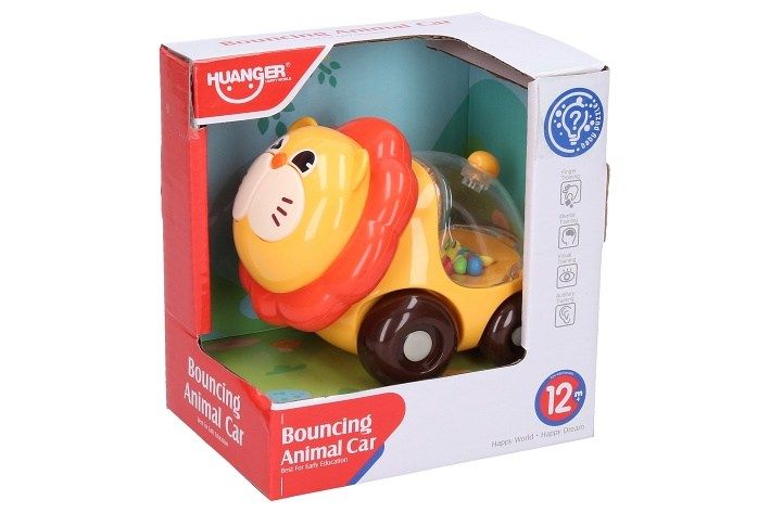 Chrastítko lev na kolečkách. Rozměr hračky 8,3x10,5x8,5 cm. Při jízdě chrastí.