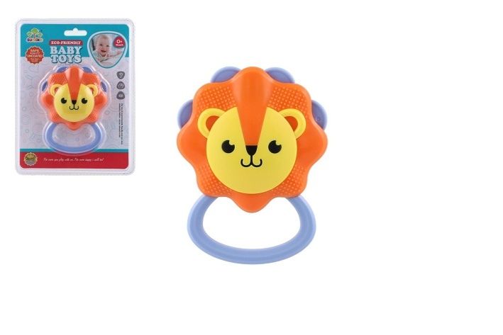 Chrastítko lev plast 9x11cm na kartě 0m+