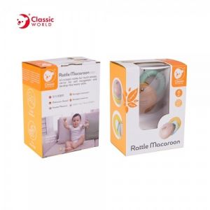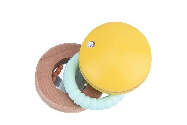 Dřevěné chrastítko pro vaš nejmenší v podobě sladké makronky. Uvnitř je ukryto i malé zrcátko. Chrastítko má nízkou hmotnost a je vhodné pro děti od 6ti měsíců. Hračka podporuje rozvoj motorických schopností u dětí a navíc napomáhá budování vztahu k přírodním materiálům a kreativitě.