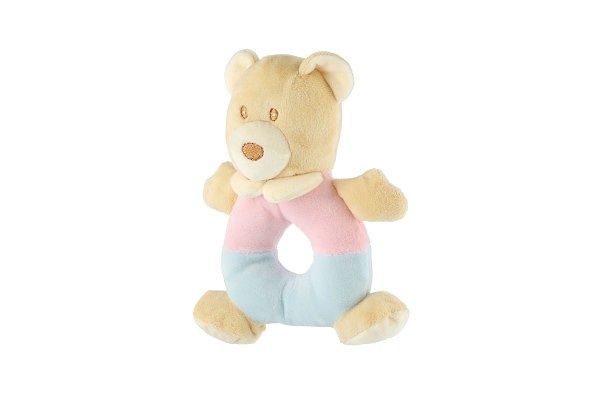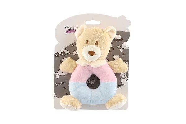 Chrastítko medvěd plyš 15x18cm béžové na kartě v sáčku 0+