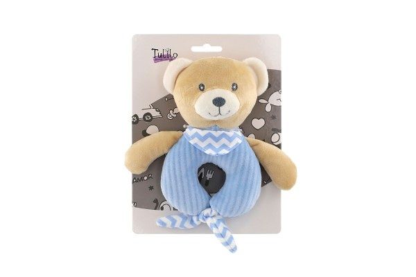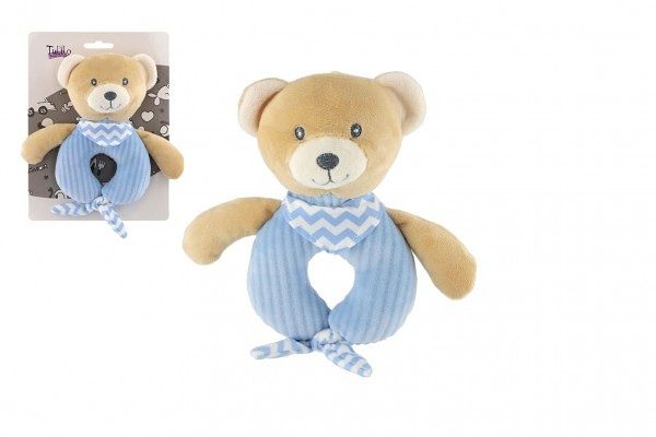 Chrastítko medvěd plyš 17x16cm modrý na kartě v sáčku 0+