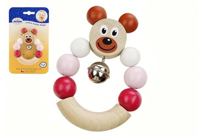 Chrastítko/Hrkadlo medvěd růžový dřevo 7x9cm na kartě 6m+