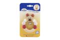 Chrastítko s medvídkem v růžové barvě. Rolnička jemně cinká. Chrastítko má nízkou hmotnost a je vhodné pro děti od 6ti měsíců. Výrobek splňuje požadavky EU na bezpečnost hraček. Rozměry výrobku jsou 70x90 mm a je připevněn na papírové kartě.