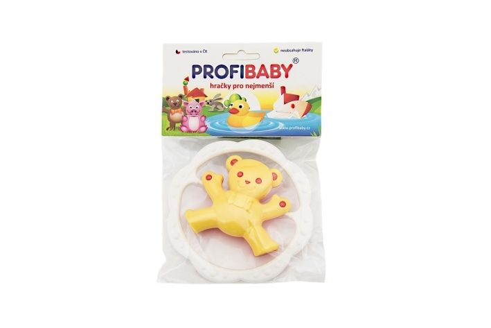 Chrastící plastová hračka pro nejmenší, medvěd, zajíc v kruhu.