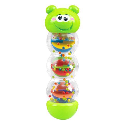 Chrastítko funguje na principu přesýpacích hodin a kuličky uvnitř chrastítka mají hned několika patrové překážky.