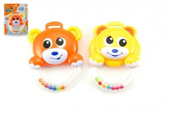 Chrastítko medvídek plast asst 2 barvy na kartě 16x21cm 3m+
