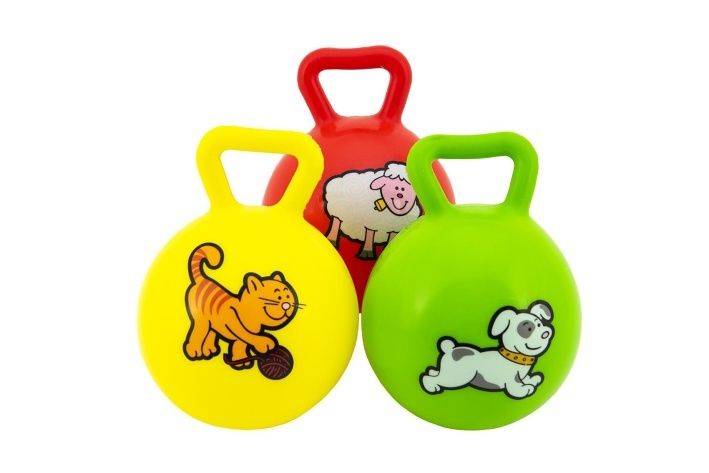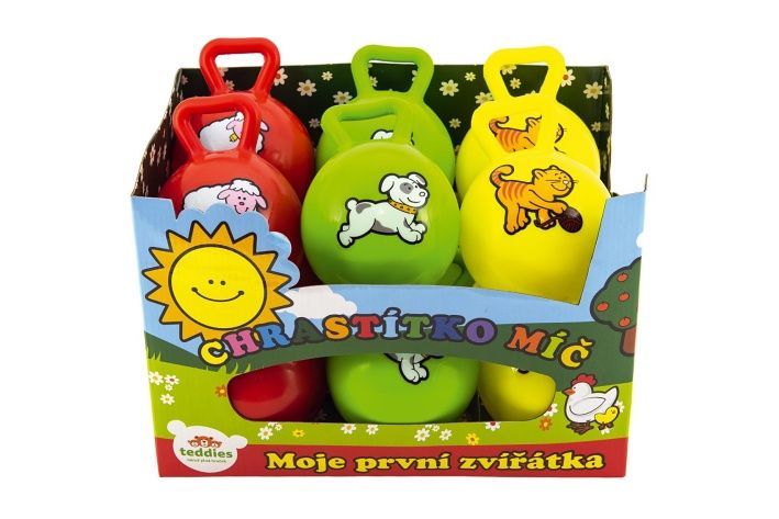 Chrastítko míč s uchem 10cm guma 3 barvy 0+
