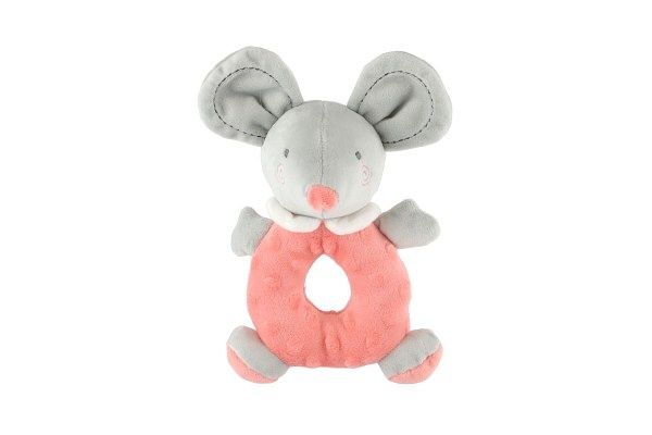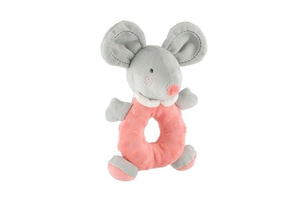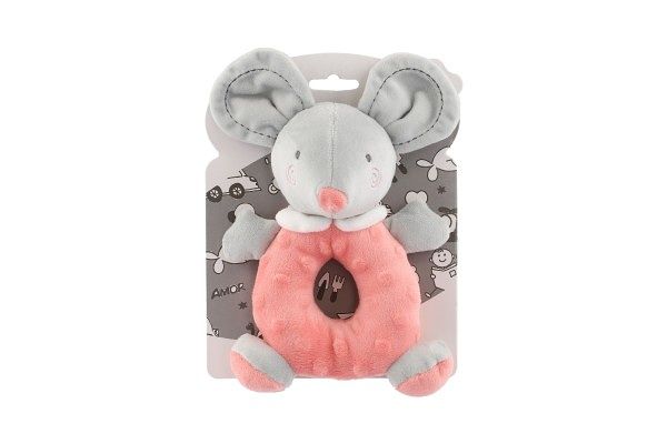 Chrastítko myš plyš 15x22cm růžové na kartě v sáčku 0+