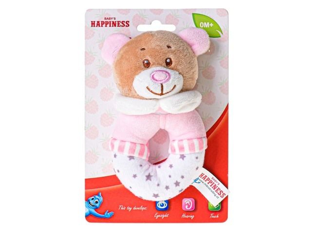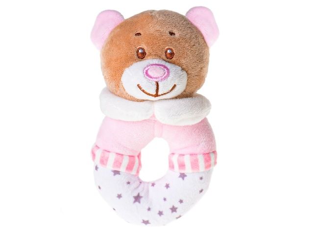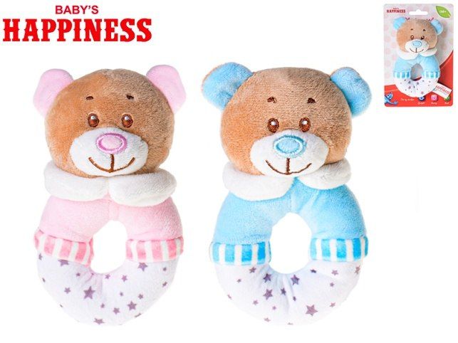 Chrastítko plyšový medvídek 13cm 2barvy 0m+ na kartě v sáčku