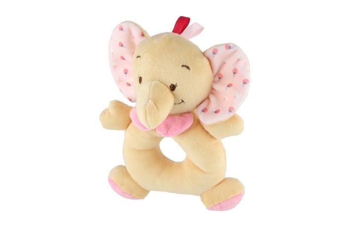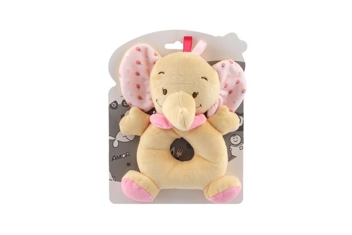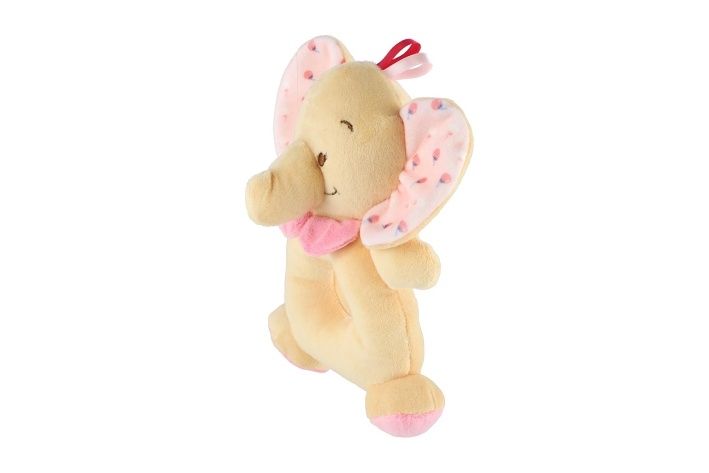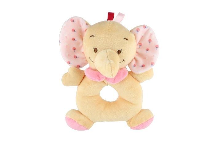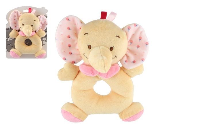 Chrastítko slon plyš 14x18cm béžová/růžová na kartě v sáčku 0+