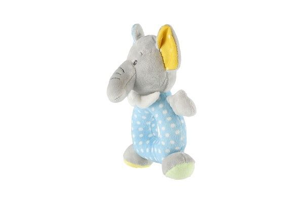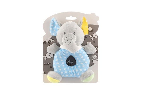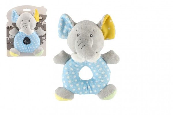 Chrastítko slon plyš 14x19cm šedé/modré na kartě v sáčku 0+