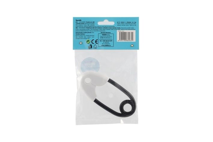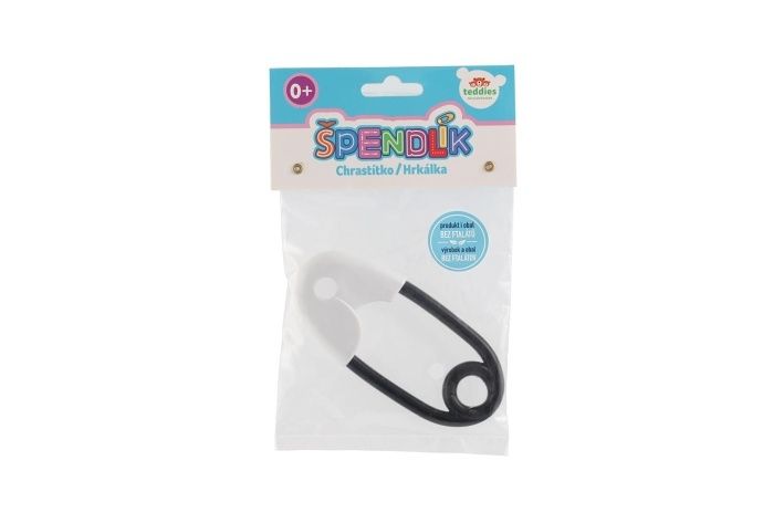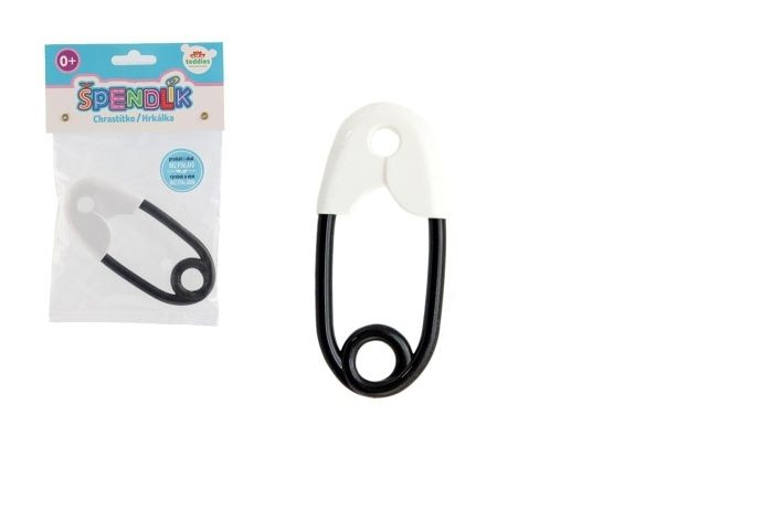 Chrastítko špendlík plast 12cm bíločerné 12x19cm v sáčku 0+