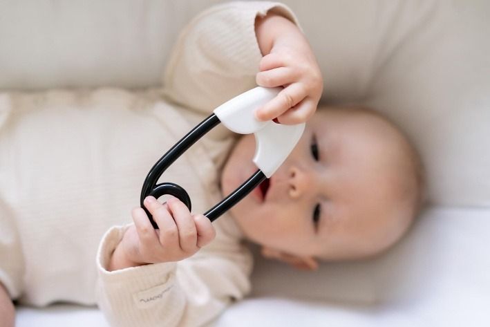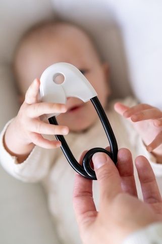 Chrastítko špendlík je klasická dětská hračka, která Vašemu dítěti nesmí chybět. Je ideální pro první pokusy miminka držet hračku. Snadno se uchopí, je velmi lehké a kontrastní provedení miminka jistě zaujme. Podporuje rozvoj jemné dětské motoriky a smyslového vnímání. Díky malým kuličkám uvnitř jemně chrastí.